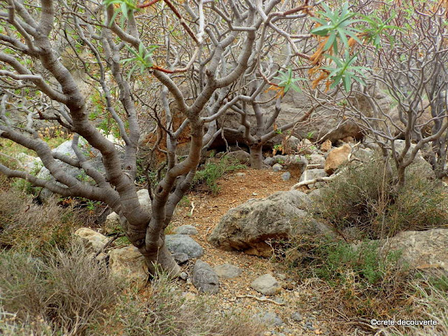 C'est l'une des plus grandes euphorbes : elle a le port d'un arbuste qui peut atteindre 2,5 m avec un tronc épais. Son nom dendroides signifie "qui a l'aspect d'un arbre". (en grec, δέντρο = dendro = arbre)